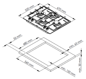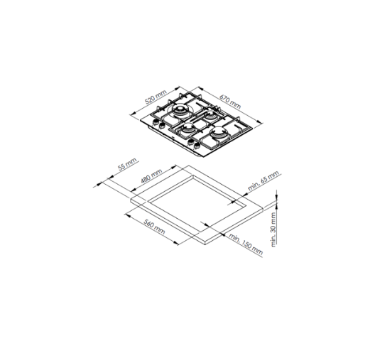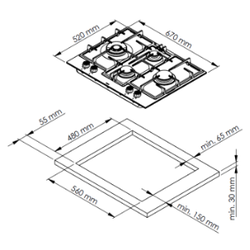 VON VBBG6541WFX 4 Gas Hob - 65cm, Stainless Steel