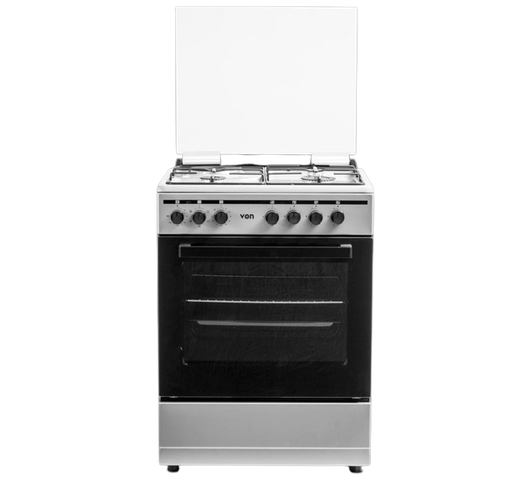 VON Freestanding Cooker – 3 Gas + 1 Electric Burners, Thick Enamel Pan Support