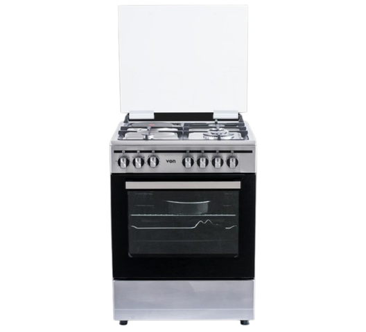 VON Freestanding Cooker – 3 Gas + 1 Electric Burners, Thick Enamel Pan Support, Flame Failure Device