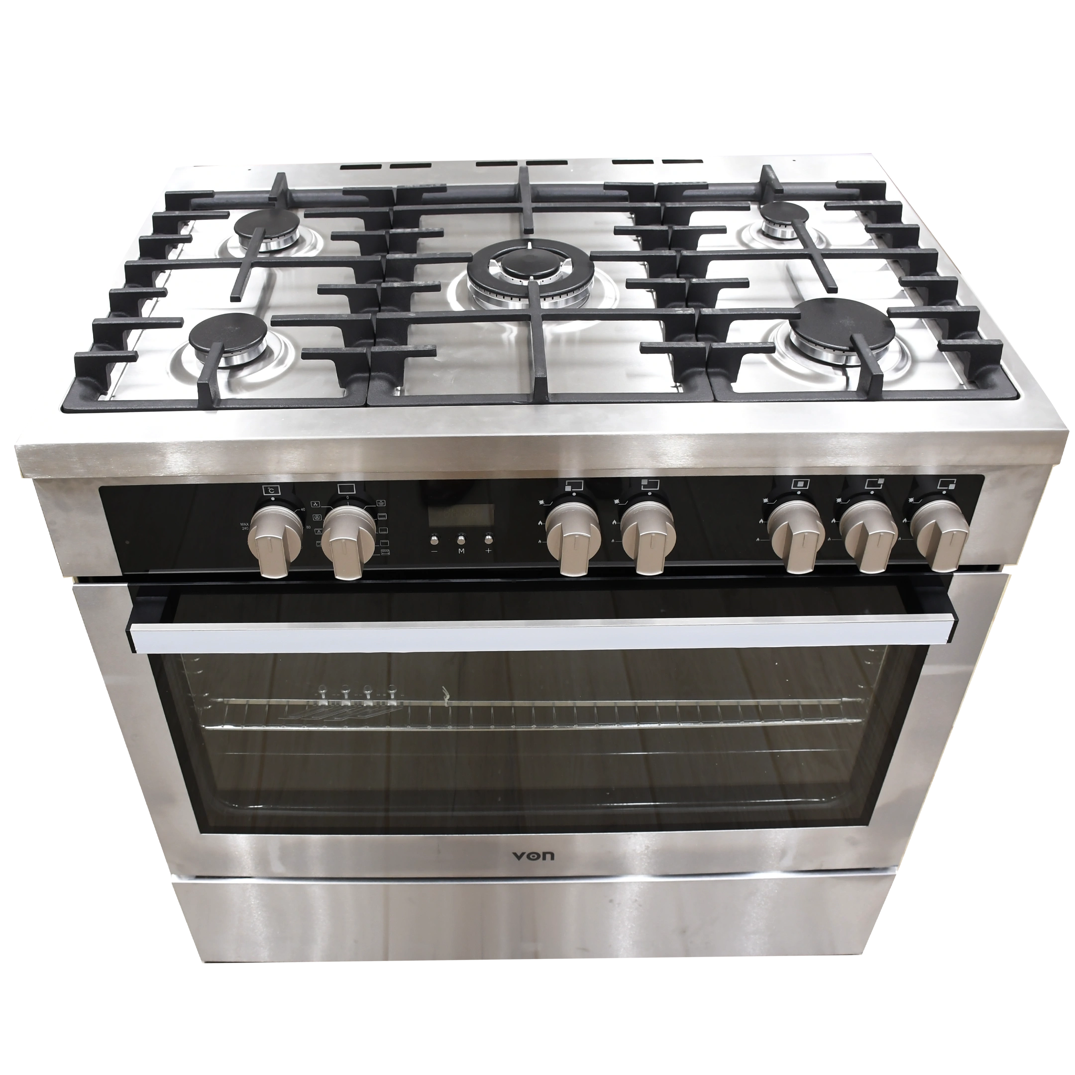 VON VCP965072FSX Freestanding Cooker – 5 Gas Burners, Cast Iron Pan Support, Flame Failure Device