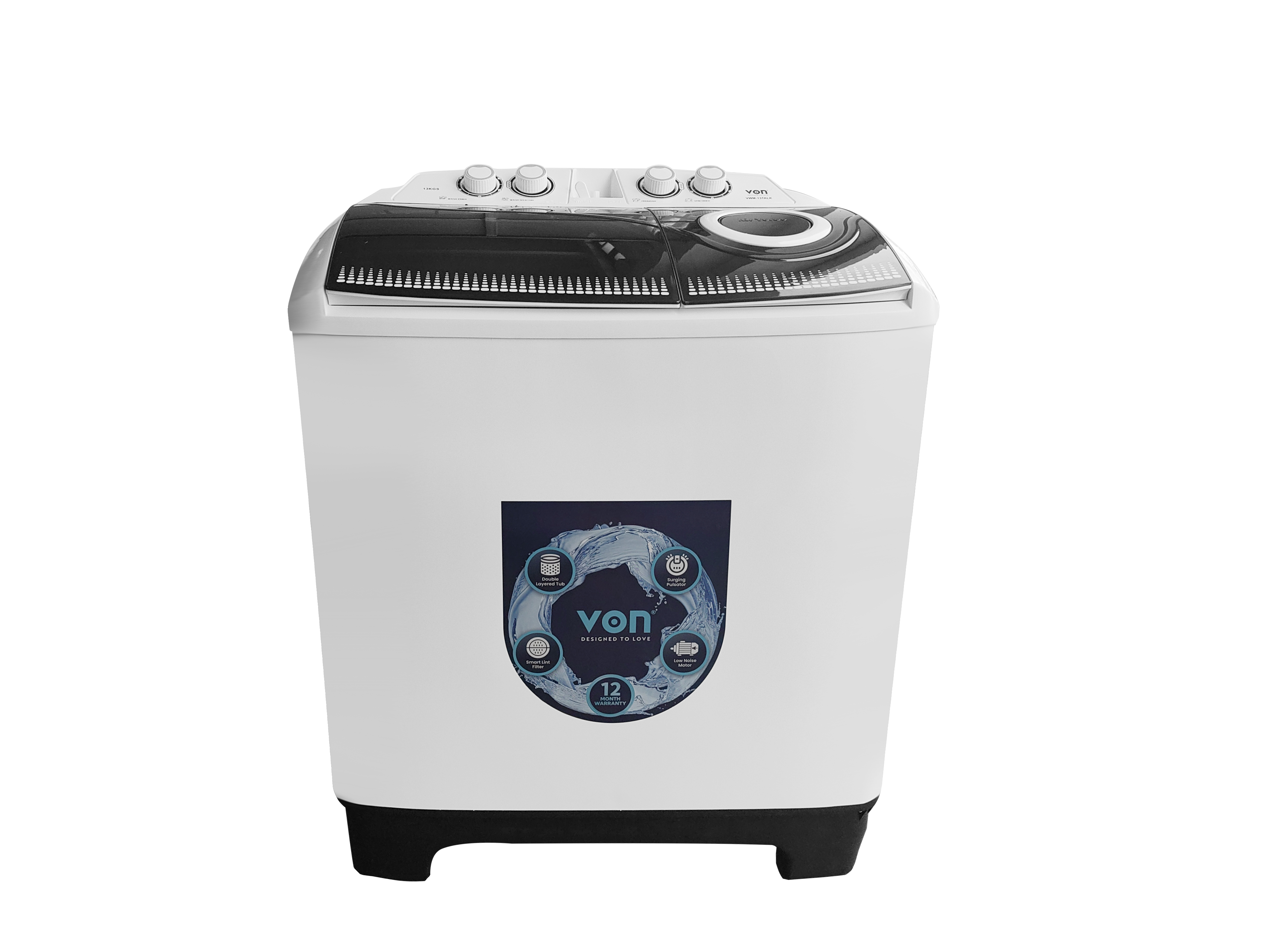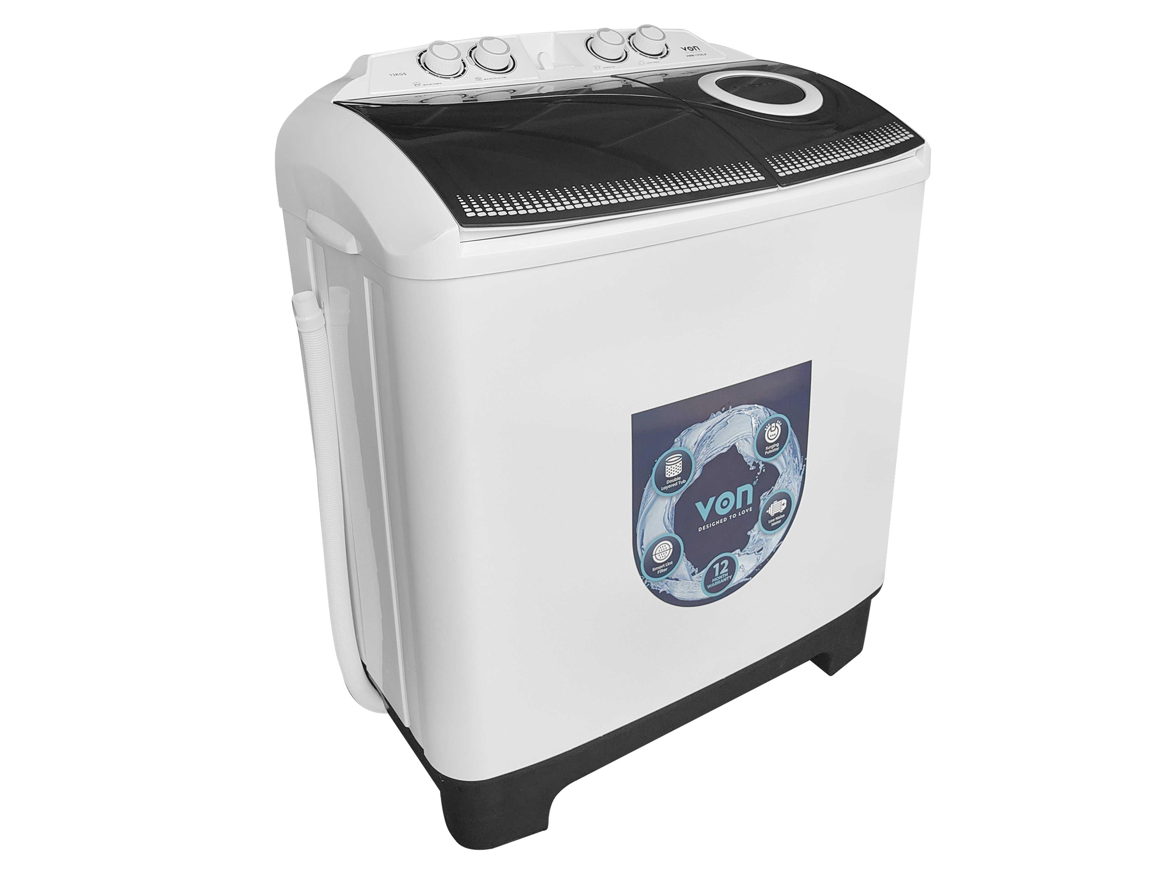 VON VWM-13TALK Twin Tub Washing Machine 13KG - Black