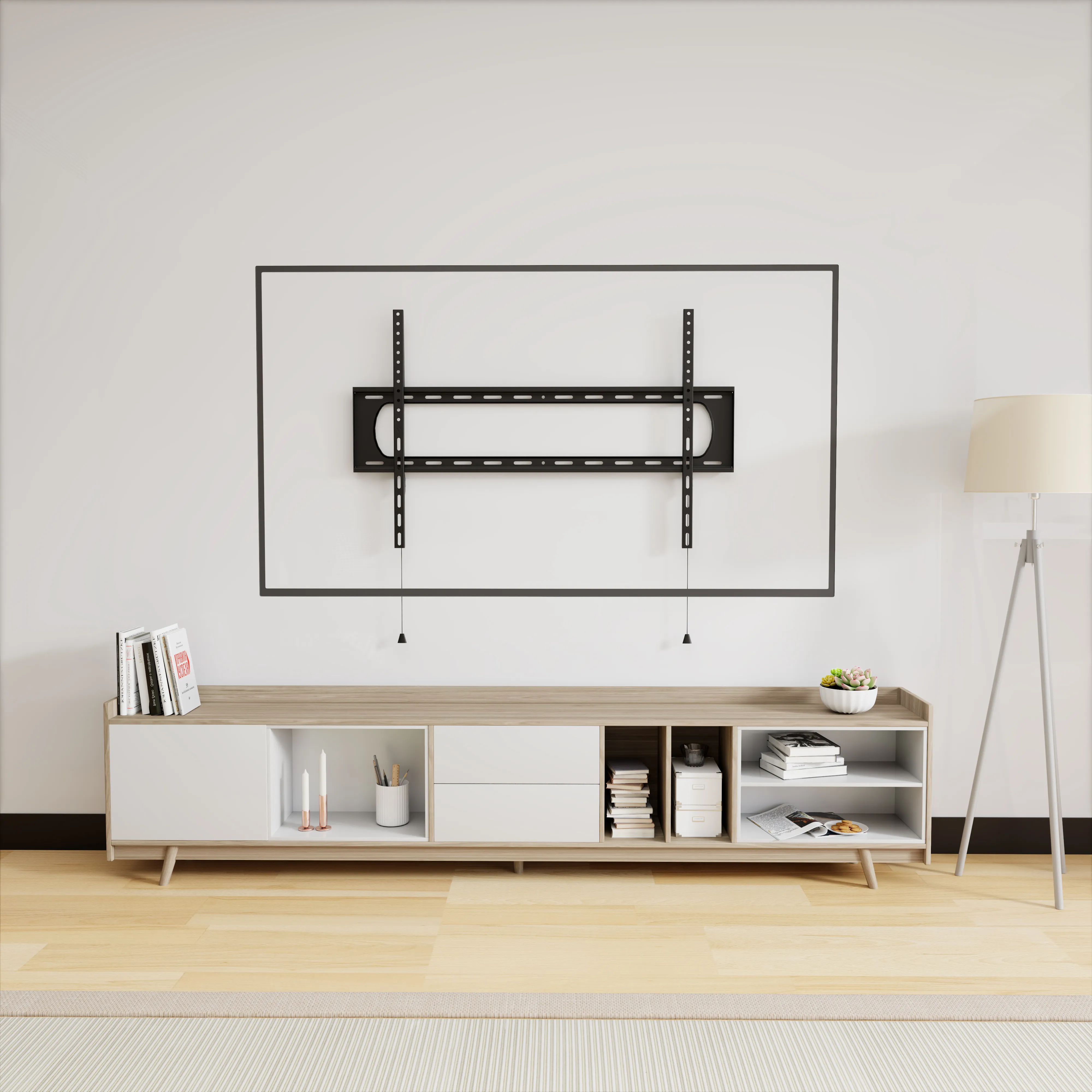 - Automatic Spring Locks with Quick-Release Cords – Secure your TV quickly and easily with built-in spring locks and convenient pull cords for fast release